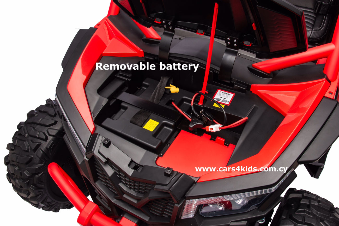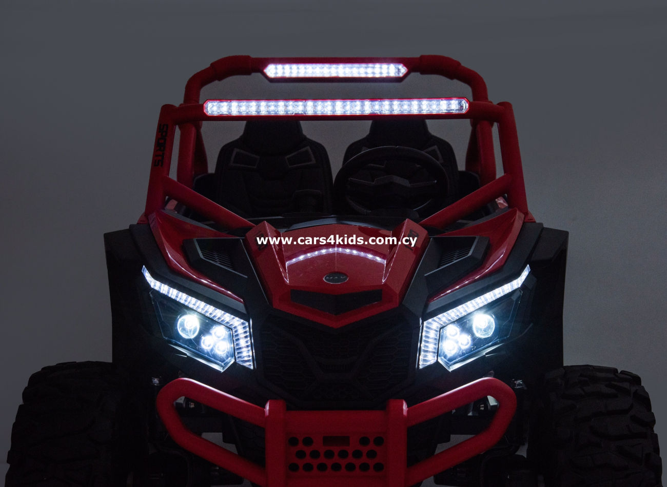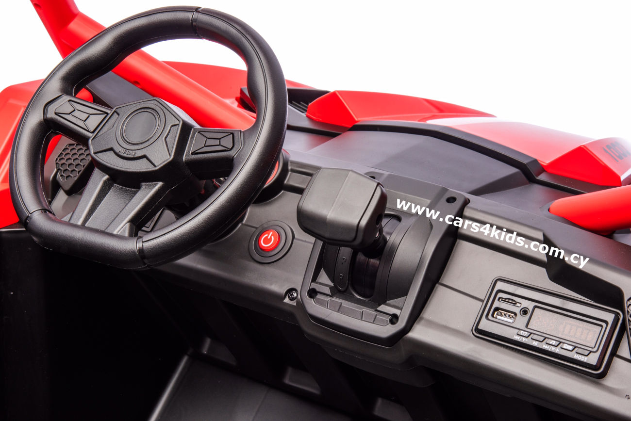 Το 24Volt Buggy Red 4x4 για να κινηθεί παίρνει μπρός πατώντας το κουμπί εκκίνησης & ακούγεται ένας μοναδικός ρεαλιστικός ήχος έναρξης αυτοκινήτου.Διαθέτει υποδοχή για USB,ψηφιακή ένδειξη μπαταρίας και κόρνα με ήχους απο το ηχοσύστημα στο ταμπό του αυτοκινήτου.