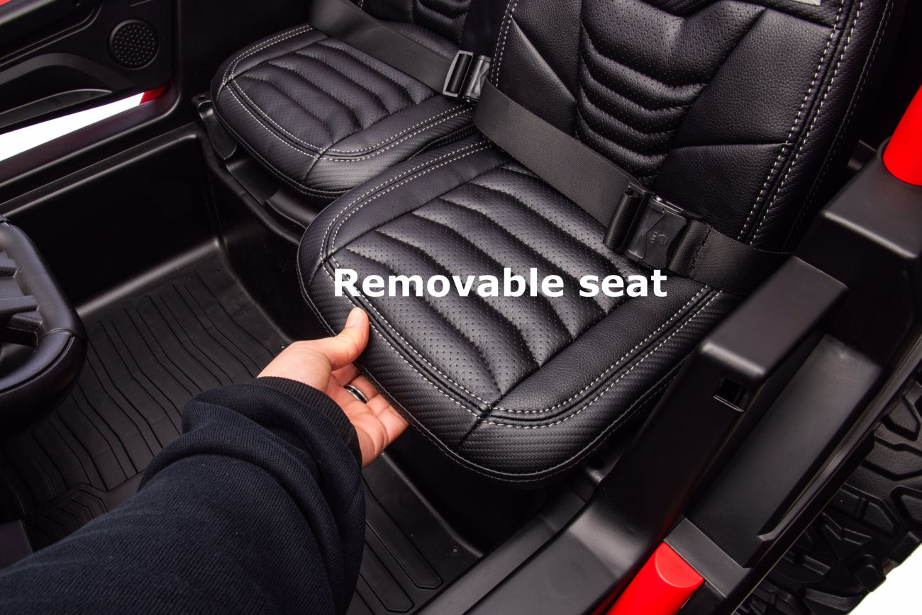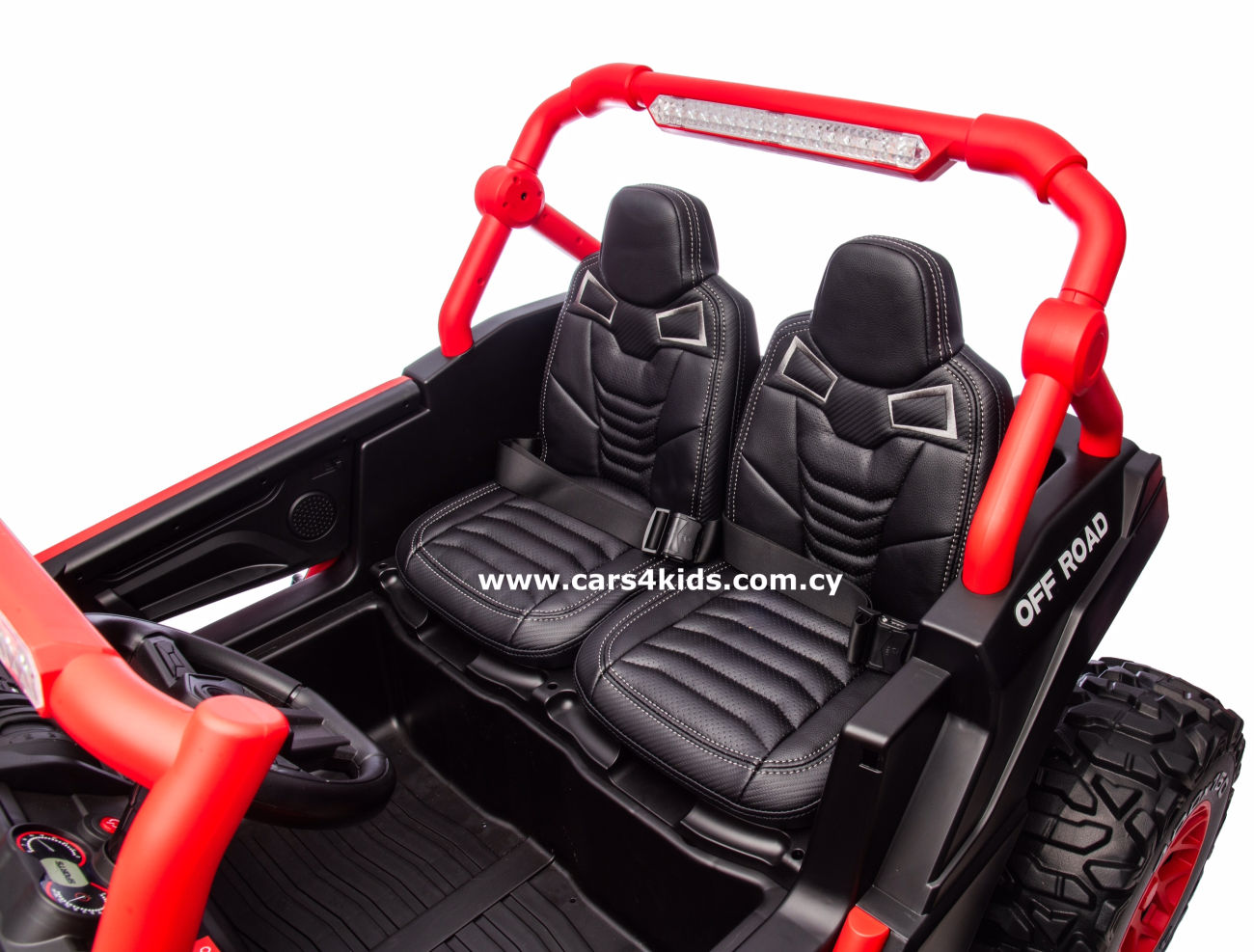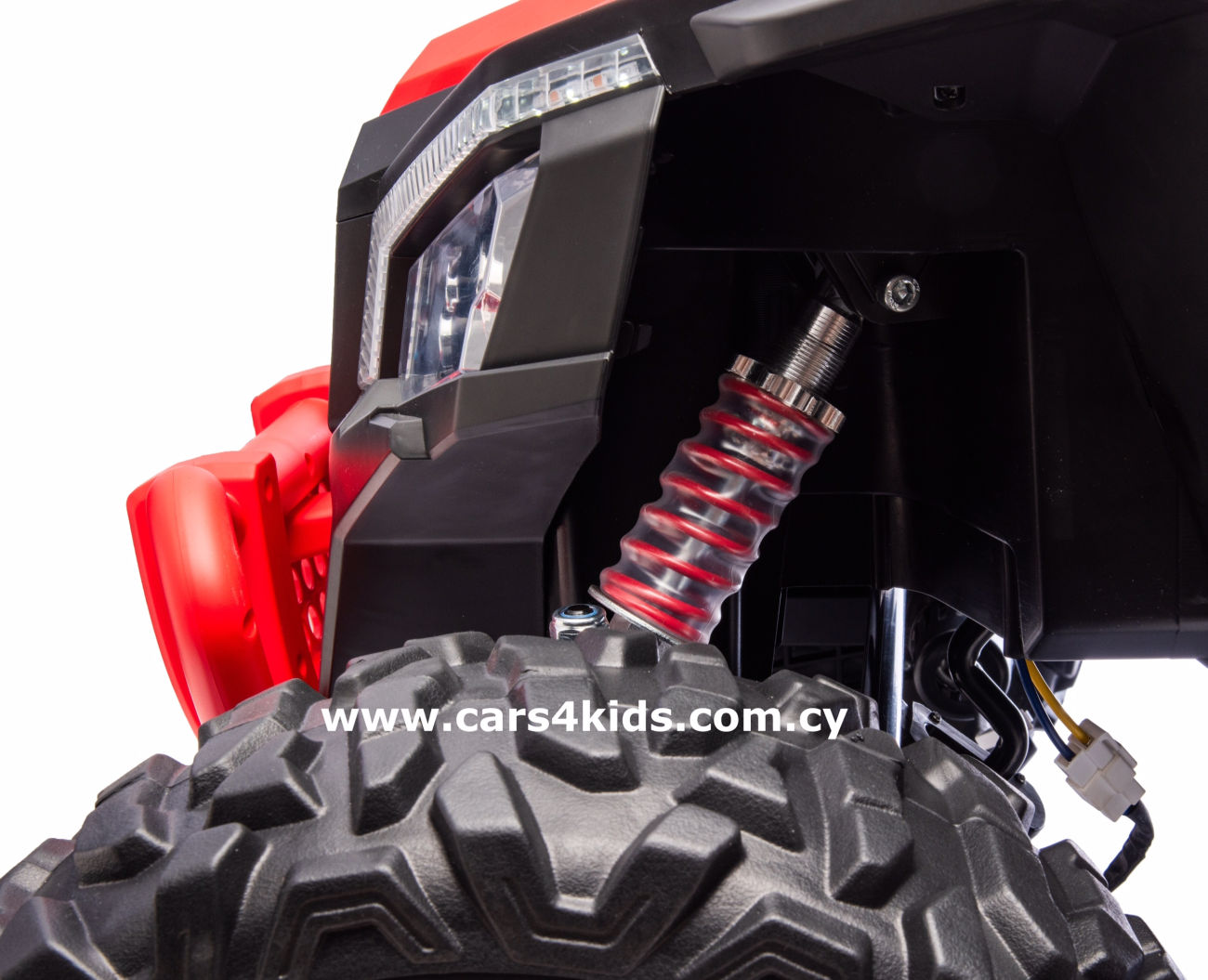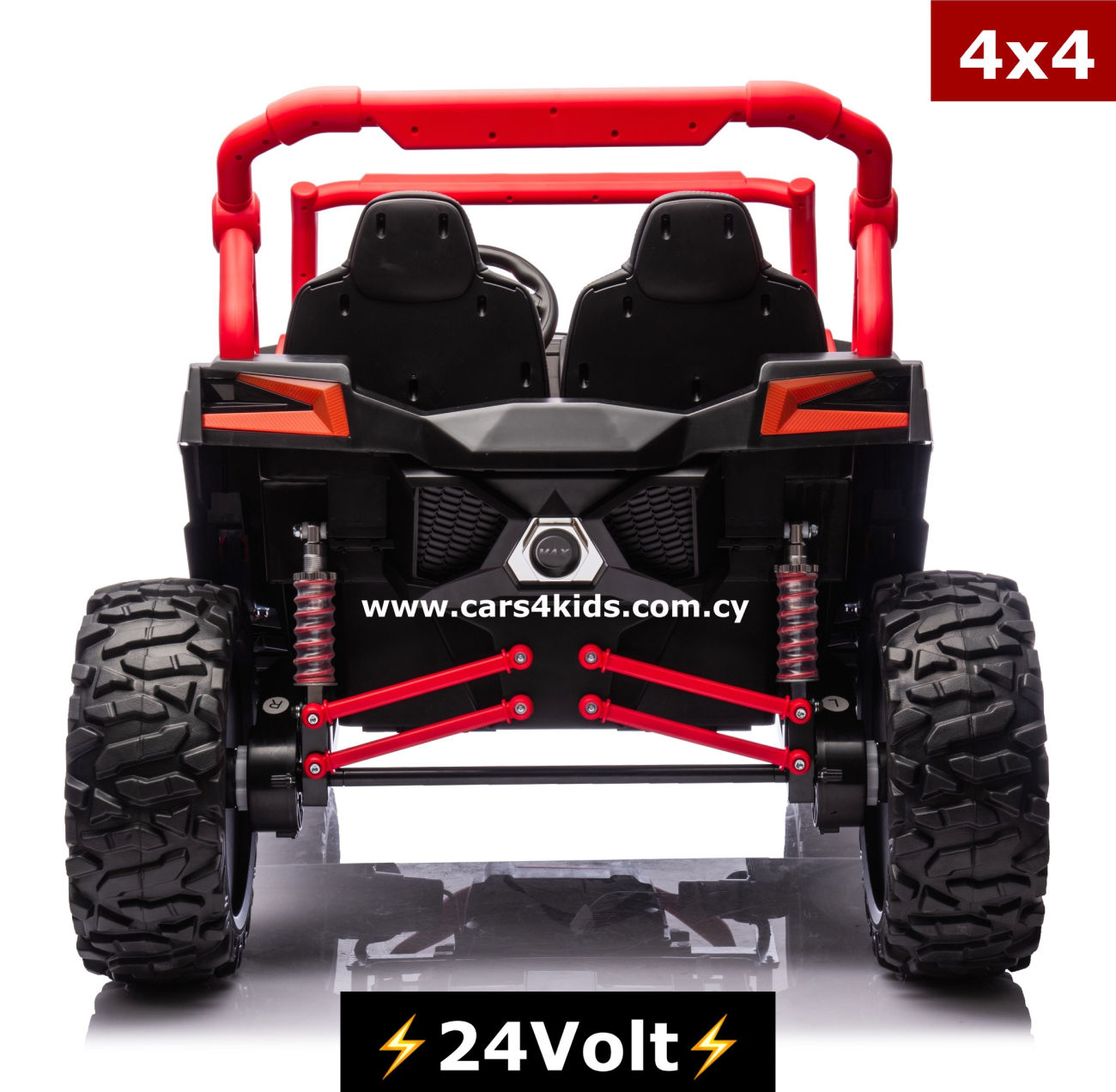Το 24Volt Buggy Red 4x4 έχει 1 μοτέρ 350 Watt σε κάθε τροχό που είναι από ΛΑΣΤΙΧΟ & δίνουν στο αυτοκίνητο καλύτερη πρόσφυση στο δρόμο.Διαθέτει μπροστά-πίσω Αναρτήσεις με ελατήρια, Ρυθμιζόμενα Δερμάτινα καθίσματα και R/C με Βluetooth 2.4G με επιλογή 6 ταχυτήτων ( 3 για εμπρός & 3 για όπισθεν).