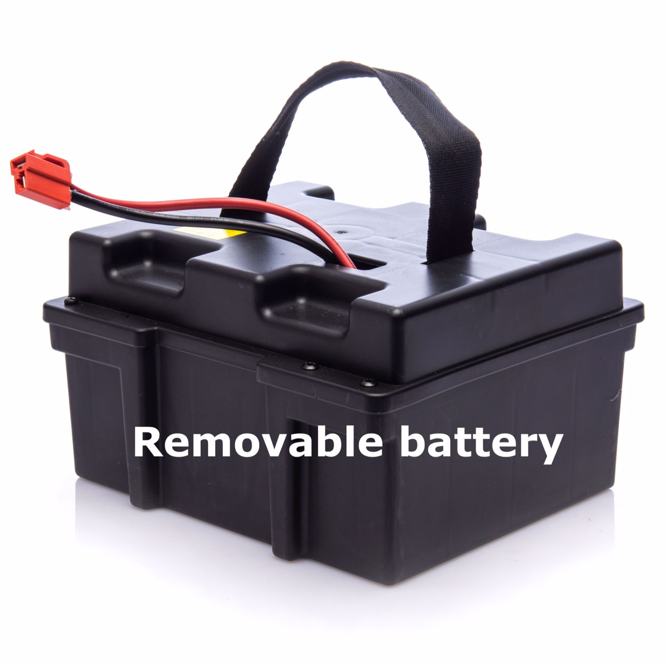 Αποτελείται από μια αφαιρούμενη επαναφορτιζόμενη μπαταρία 24 Volt,14Ah που έχει διάρκεια 1,5 έως 2 ώρες ανάλογα με το βάρος του παιδιού και τον τρόπο χρήσης του & για την ασφάλεια των παιδιών υπάρχουν ζώνες ασφαλείας.
